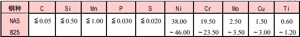 NAS 825 是含高鎳的高級耐腐蝕合金,對氧化性以及非氧化性的酸而言其耐腐蝕的性能很優秀。