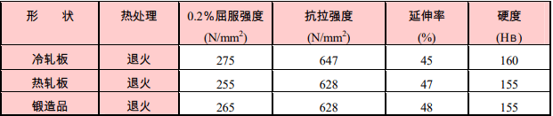 NAS 825 對于氧化性酸,以及非氧化性酸即硝酸;磷酸等而言其耐腐蝕性非常良好,再者,對含有氯化物的溶液;海水中的點蝕以及應力腐蝕都具有良好的耐腐蝕性。此外,和具有穩定型的不銹鋼相同,對晶間腐蝕也具有極其良好的耐腐蝕性。